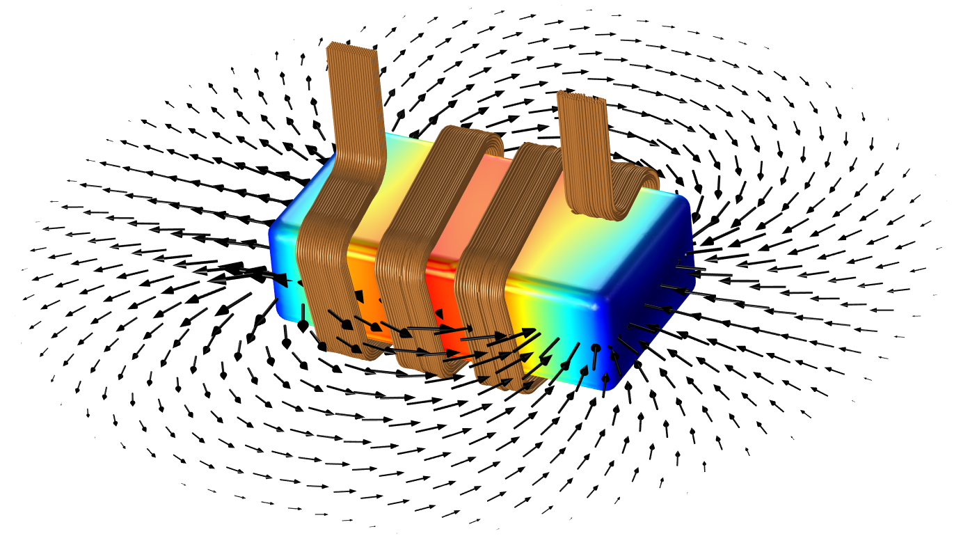 A plot of the magnetic flux lines around an inductor.