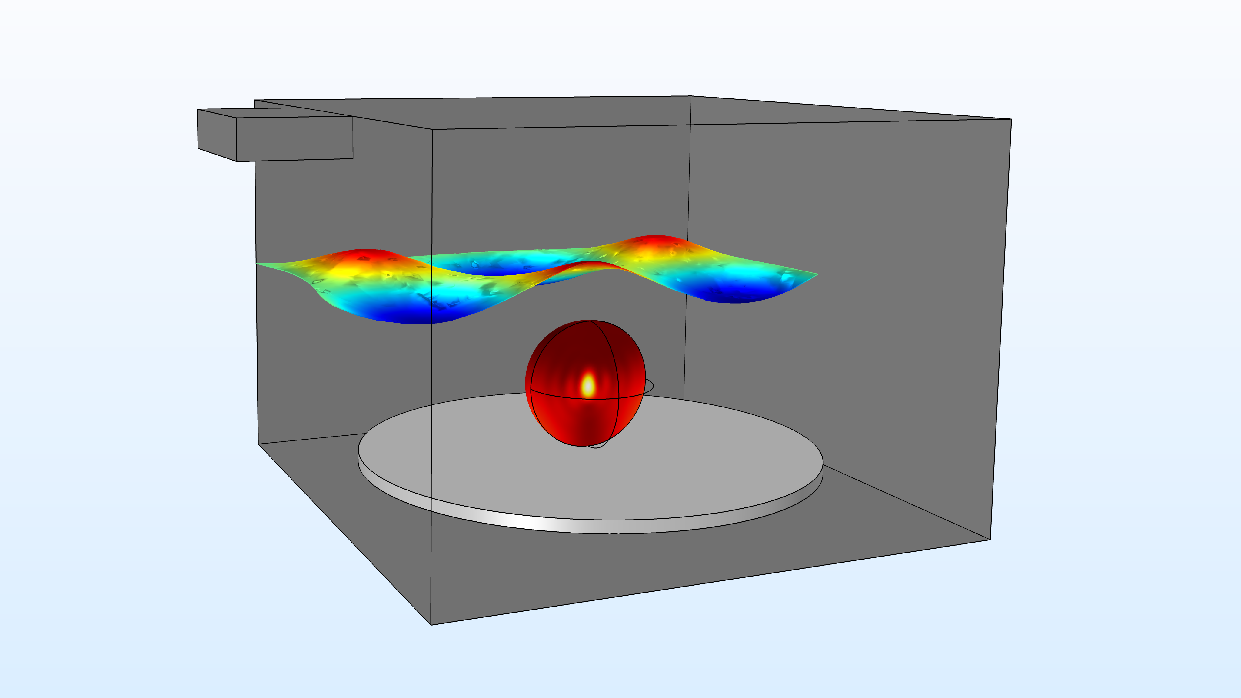 An image showing the standing electromagnetic wave in a microwave oven model.